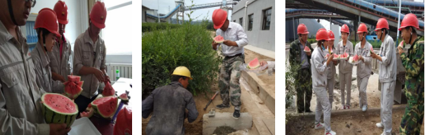 檢修前線后勤服務(wù)暖人心。公司堅持“團結(jié) 拼搏 求實 創(chuàng)新”的企業(yè)精神,積極開展夏日“送清涼”系列活動,檢修現(xiàn)場熱火朝天,炎炎夏日,煮好的冰糖菊花水、礦泉水、西瓜等送到新建化驗室清掃現(xiàn)場、檢修現(xiàn)場,緩解酷熱,增加了員工的熱情和干勁,也保證了高溫環(huán)境下檢修各項工作有條不紊地進行,他們時刻為檢修服務(wù)、為生產(chǎn)服務(wù),確保檢修項目順利、圓滿完成。