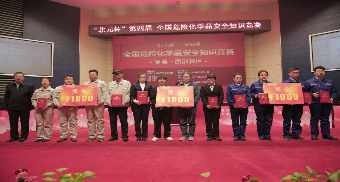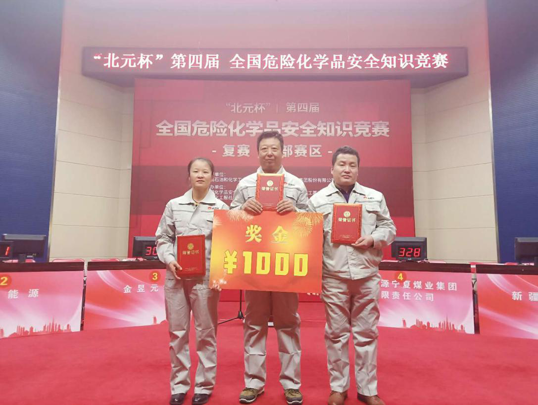 2018年12月7日,由中國石油和化學(xué)工業(yè)聯(lián)合會指導(dǎo),中國化學(xué)品安全協(xié)會、中國化工報(bào)社主辦,陜西北元化工集團(tuán)股份有限公司冠名,鄂爾多斯大路煤化工基地管委會協(xié)辦,國家能源寧夏煤業(yè)集團(tuán)有限責(zé)任公司承辦的“北元杯”第四屆全國危險(xiǎn)化學(xué)品安全知識競賽西部區(qū)復(fù)賽在寧夏銀川寧東能源基地舉行。集團(tuán)公司受邀參加此次比賽,公司領(lǐng)導(dǎo)高度重視,經(jīng)過選拔,挑選出安全知識豐富、生產(chǎn)經(jīng)驗(yàn)較強(qiáng)、業(yè)務(wù)能力突出的3名員工組成代表隊(duì)及20多人組成的啦啦隊(duì)參加比賽,并獲得了第三名好成績。