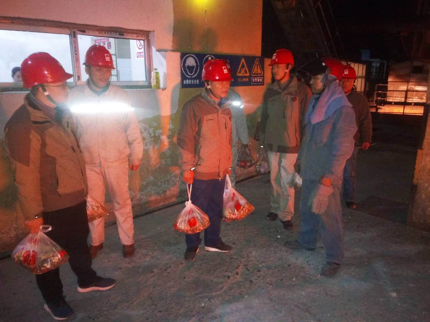 當許多人坐在電視機前,吃著團圓飯,看著春節(jié)晚會時,有這么一群人仍然堅守在崗位上,他們就是資源再生公司的一線工人,舍小家保大家是他們愛崗敬業(yè)的見證。除夕夜22:00左右,資源再生公司各級管理人員匯聚在一起,帶著禮品,深入生產(chǎn)一線,為員工送去了節(jié)日的問候,感謝大家在節(jié)日期間恪盡職守、任勞任怨、無私奉獻,希望大家在繁忙的工作中注意身體健康,并囑咐堅守崗位的職工們一定要確保自身安全及設備、工藝、質(zhì)量的安全穩(wěn)定運行,也祝資源再生公司的全體職工及家屬新年快樂。