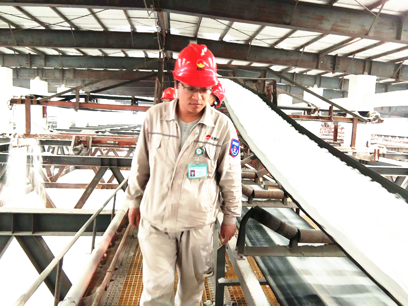 第一次進入現(xiàn)場,第一次看到鹽漿排入鹽漿桶,通過離心機神奇般的甩出濕鹽,然而運行三臺離心機需要四個人操作,由上到下一直要敲打管道,才甩出鹽通過皮帶運輸至棧橋,棧橋操作要同時經(jīng)過三個人共同努力,才能將鹽送入散濕鹽倉,看著潔白如雪的它們,我們的心也怦然心動、手握著這潔白圣潔的鹽,像看著偌大的鹽倉孕育出了生命一般,望著同事們臉上喜悅的笑容,我們終于無法自控,大聲吶喊:鹽出來了!每個人的眼神都是自豪與興奮。這時,我們的心無形中已經(jīng)扎根在了這片土地上。是我們共同的努力取得了喜悅的大豐收!