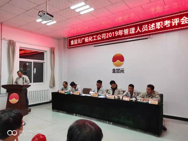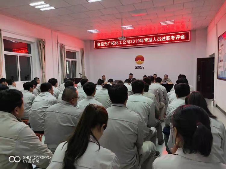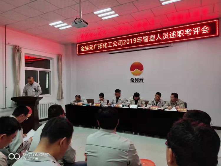 2019年11月19日—20日,廣拓化工公司利用下班時間組織召開了2019年度管理人員述職考評會,會議由興昊黨支部副書記王志杰主持,化工公司總經(jīng)理,副總經(jīng)理,安全總監(jiān),副總工程師出席,32名述職人員及110名職工代表參加。
