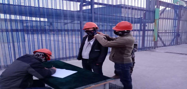 在南門,面對進出的車輛及人員,他們檢測、消毒、登記同步進行。園區(qū)里他們戰(zhàn)“疫”用擔(dān)當(dāng)換來大家的平安。當(dāng)日,他們共登記檢測 人(車輛)信息,體溫均在正常范圍。