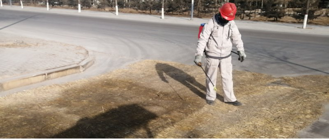 對廠區(qū)衛(wèi)生間消毒。