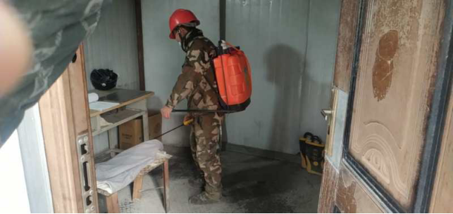 對廠區(qū)衛(wèi)生間消毒。