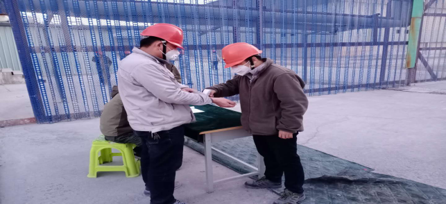在園區(qū)南門,今日截止下午17時整,他們檢測、消毒、登記車輛112輛(其中水泥14車輛,熟料4車輛,液堿2車,鹽酸1車),人員119人信息,體溫均在正常范圍,另外隨行24人體溫均在正常范圍。