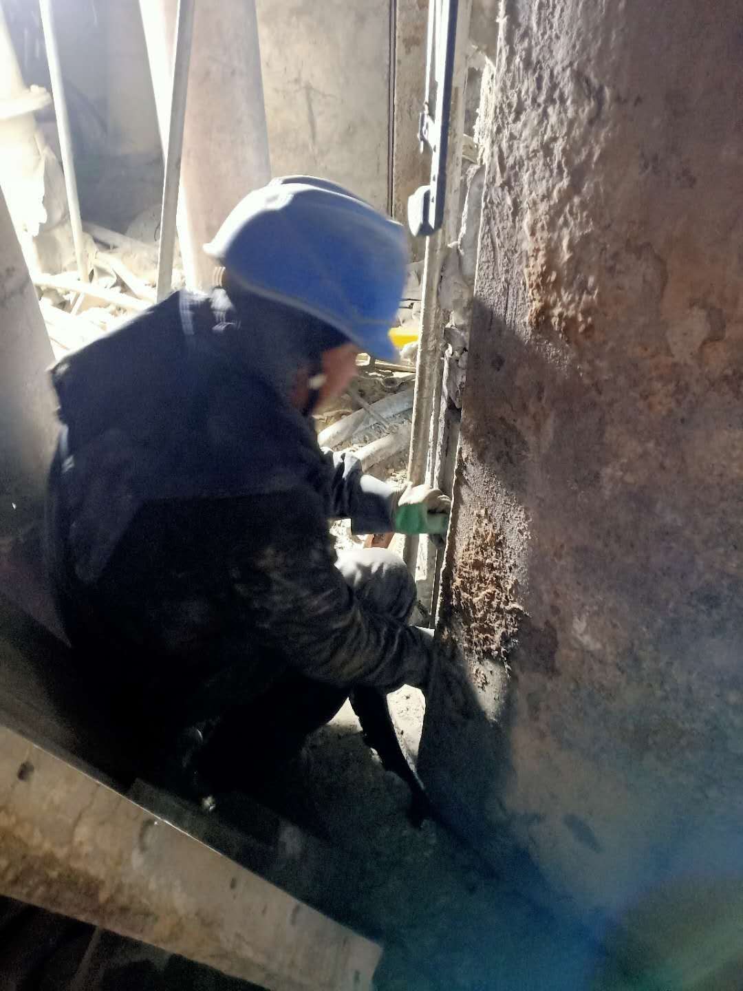 走進電石爐檢修現(xiàn)場,參與檢修的同事們或蹲或站,手上不停的忙碌著。管理人員放棄休息堅守檢修現(xiàn)場,確,F(xiàn)場無違章作業(yè)現(xiàn)象。狹小的檢修空間,一個人蹲在那兒來回動一下都有點困難,可維修工絲毫不受影響,專注的眼神緊盯手中的檢修工具,不允許自己出一丁點兒差錯。