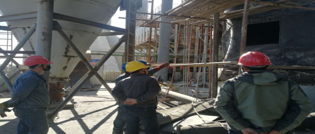 (1)窯尾煙室、下料舌頭、篦冷機(jī)側(cè)墻澆注料修補(bǔ)(完成);