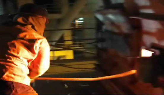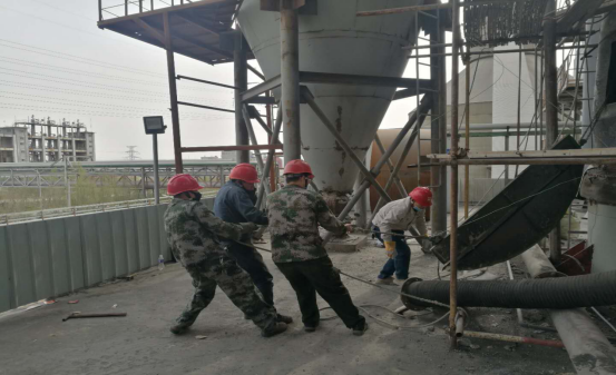 在清理結(jié)皮現(xiàn)場,面對預熱器本身設備的炙烤外,還有夏季本身炎熱,而他們在每一處作業(yè)點,都是那樣“激戰(zhàn)正酣”,他們輪流揮舞著大錘敲打著鋼釬,熟練、小心的用著“水炮”,一遍又一遍,敲碎了“結(jié)皮”,疏通了管道,每一點都是力氣活,耗時耗力。有時候,往往一錘下去鋼釬卻絲毫不動,但我沒從他們臉上看到灰心的表情。近12個小時的工作量,但從井然有序的場面我仍然可以看出他們有分工也有協(xié)作,同時銘記安全第一。
