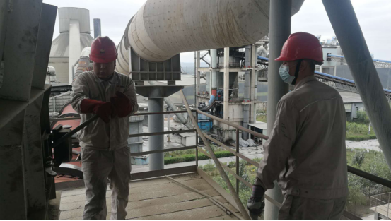 在預熱器每一層框架,讓我們都會有一種“未見其人,先聞其聲”的感覺,錘子的敲擊聲、檢修負責人的交底聲,聲聲入耳,像是一首和諧的樂章。