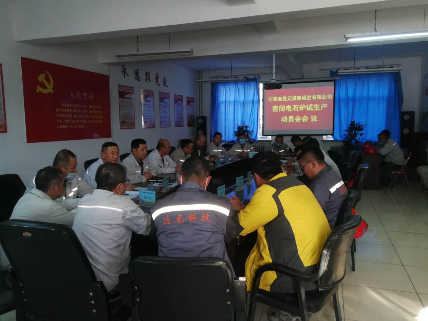 10月14日下午16:00時,資源再生公司召開電石爐系統(tǒng)試生產(chǎn)動員會議。公司電石系統(tǒng)技術(shù)員以上管理人員、外協(xié)施工單位所有負責人參加此次會議。會議首先由安全總監(jiān)鄒永清組織對電石爐試運行期間安全注意事項進行學(xué)習,然后由副總經(jīng)理雷銳組織學(xué)習密閉電石爐試運行開車方案,副總經(jīng)理岳廣平對密閉電石爐開車時的安全做進一步的要求后,由資源再生公司總經(jīng)理王鐵鎖做密閉電石爐試生產(chǎn)動員。