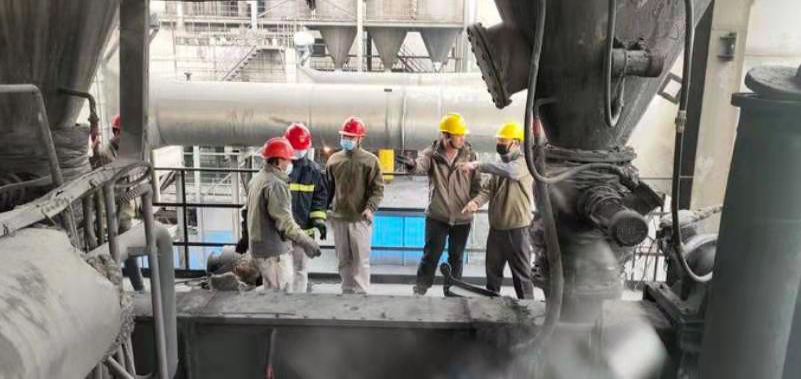 現(xiàn)場(chǎng)的檢修工作正在如火如荼的進(jìn)行著,檢修項(xiàng)目主要有修復(fù)、更換導(dǎo)電元件、檢查護(hù)屏、空冷倉(cāng)清灰、刮板機(jī)消漏等,本次檢修大家都團(tuán)結(jié)協(xié)作,只為一個(gè)目的而奮戰(zhàn),那就是圓滿的完成檢修任務(wù),在他們身上體現(xiàn)了金昱元人的“相互尊重、相互信任、相互支持、榮辱與共”的團(tuán)隊(duì)理念。此次檢修時(shí)間短,檢修項(xiàng)目較多,檢修任務(wù)繁重,但是大家從來(lái)沒(méi)有怨言,都主動(dòng)加班加點(diǎn)的工作,吃完午飯,放棄午休時(shí)間,來(lái)投身到這場(chǎng)沒(méi)有硝煙的戰(zhàn)火當(dāng)中。