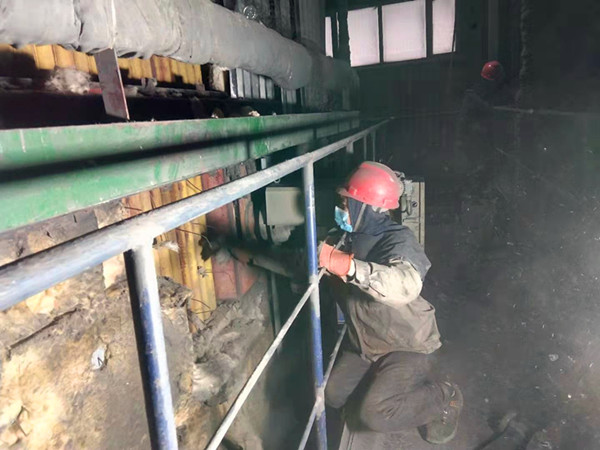 在檢修現(xiàn)場,隨處可見檢修人員忙碌的身影,他們不斷的變換著動(dòng)作,靈活地使用各種型號(hào)的工器具。檢修過程中每一個(gè)起吊都小心翼翼,每一個(gè)動(dòng)作都井然有序。只看見熱力裝置長毛文軒從爐膛狹小的人孔鉆進(jìn)爐膛,借助二十多米高的腳手架,對(duì)水冷壁管的磨損情況進(jìn)行細(xì)致檢查,對(duì)澆注料、燃燒器、過熱器等受損情況也進(jìn)行了逐一查看。他帶領(lǐng)熱力裝置全員由點(diǎn)到面,由里到外、全方位監(jiān)管督導(dǎo),有效提升檢修質(zhì)量。