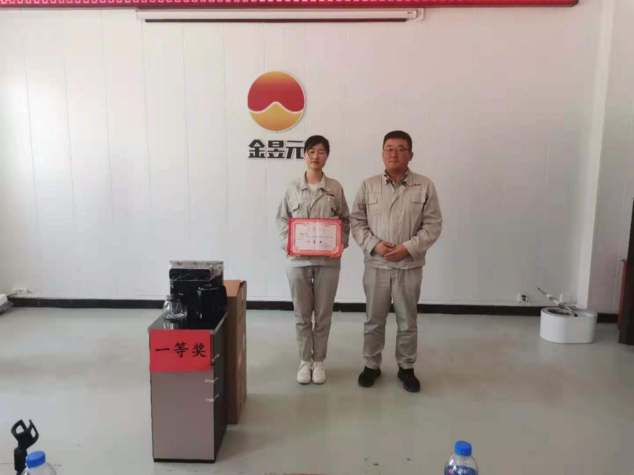 經(jīng)過激烈角逐,最終本次比賽的一等獎由電解裝置的海娟獲得,獎品為茶吧機一臺,化工公司總經(jīng)理賈存富為她頒發(fā)了獎品和榮譽證書。
