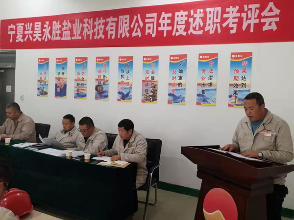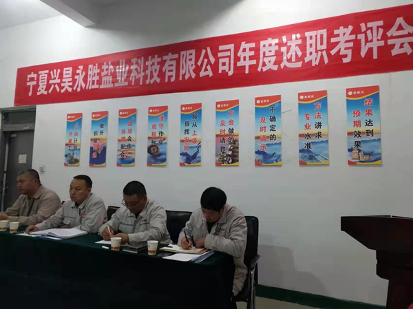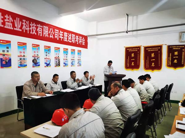 2021年12月2日下午,寧夏興昊永勝鹽業(yè)科技有限公司組織召開2021年度管理人員述職考評會,聽取管理人員履職情況、管理目標(biāo)和重點工作完成情況、分管工作和本人履職中存在問題及下一年的工作思路。