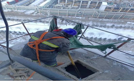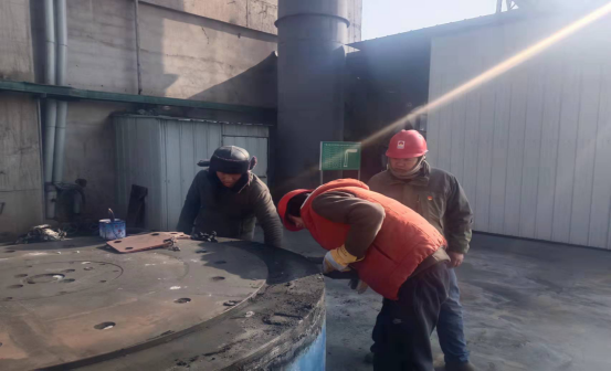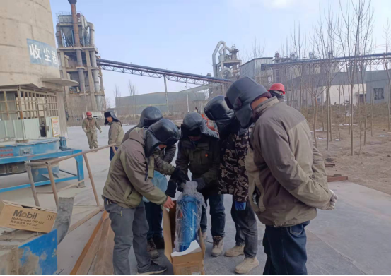 檢修人員鉆進預熱器檢查門子是檢修預熱器管道的“必經之路”,也是支撐徹底完成預熱器檢修的關鍵環(huán)節(jié)。因為時間緊、任務重,為了不影響檢修進度,檢修人員常常進去干干凈凈,出來時灰土灰臉,不得不輪番上陣,從上到下,完成結皮清理。他們四人一組,從安全監(jiān)護到技術指導,干一干,歇一歇,接著再繼續(xù)……即便是當前零下十幾度,也能干出一身汗,喝口水的功夫,滲出的汗液就能結成冰。