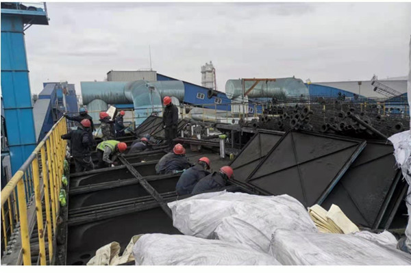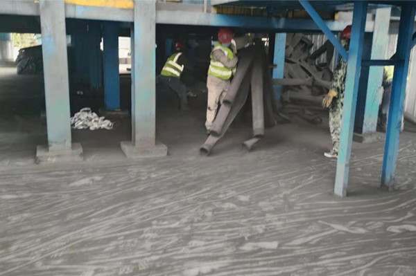 “兵分兩路,烈日前行”。5月22日早晨8:30,30多人開(kāi)始在除塵系統(tǒng)頂部開(kāi)始舊布袋和袋籠的拆除工作!耙粋(gè)布袋長(zhǎng)4.2米,全部堆到這兒,對(duì)平臺(tái)上的作業(yè)人員很不安全,我們還是把布袋疊好,放在大袋子中,這樣現(xiàn)場(chǎng)就不亂了!睅酌毠ぜ皶r(shí)規(guī)整舊布袋。