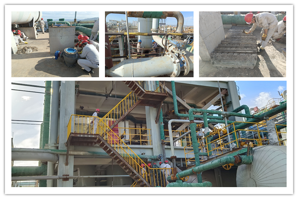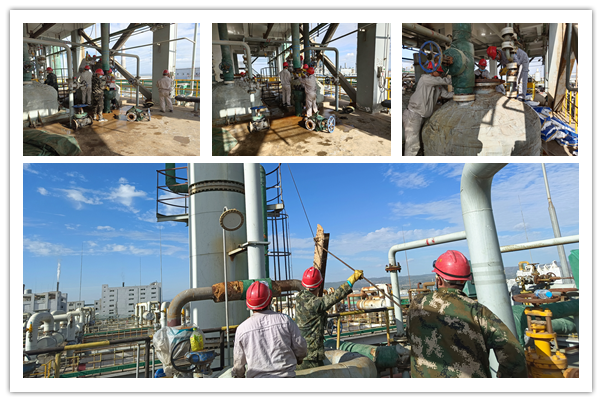 檢修第一天,各崗位管線旁和設(shè)備前隨處可見檢修人員忙碌的身影,全體員工以飽滿的熱情和昂揚的斗志全身心投入到檢修工作中。在檢修中錘煉了意志、增長了才干、提升了能力。本次檢修主要涵蓋了現(xiàn)場設(shè)備閥門的維護保養(yǎng)以及安全運行檢查,精餾高低塔清理,干燥流化床清洗等項目。