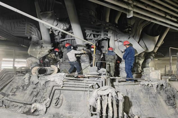 狹小空間里彎腰馱背的姿勢,高空中身系安全帶小心翼翼的挪步;除塵器上蹲坐的和布袋同色身體,電極本體上一雙雙忙忙碌碌不息的雙手都證明了他們對(duì)這份工作的激情。