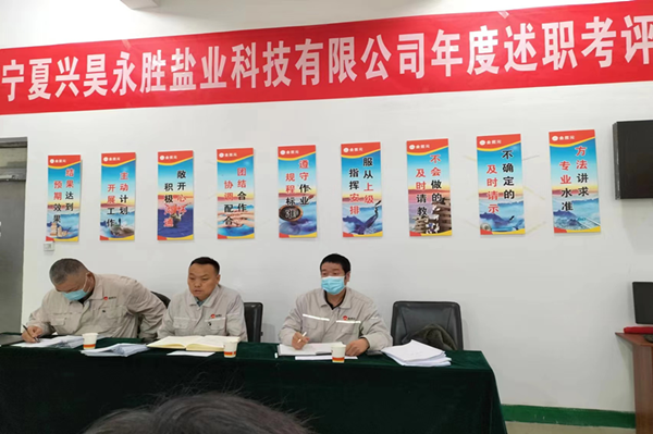 2022年12月4日上午,寧夏興昊永勝鹽業(yè)科技有限公司組織召開2022年度管理人員述職考評(píng)會(huì),聽取管理人員履職情況、管理目標(biāo)和重點(diǎn)工作完成情況、分管工作和本人履職中存在問題及下一年的工作思路。