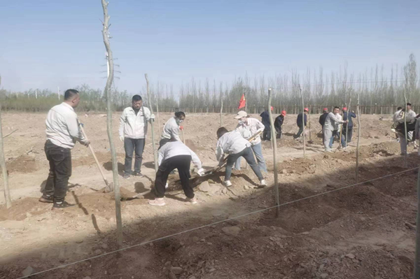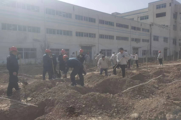 春光明媚的四月,萬物復(fù)蘇,春風(fēng)吹綠了枝頭上的嫩芽,吹綠了地上的小草,大地上的每一個角落都充滿了春天的氣息。在這美好的季節(jié),公司全體領(lǐng)導(dǎo)干部和一線員工積極、主動參與植樹活動。植樹現(xiàn)場,大家干勁十足,挽起衣袖、拿起鐵鍬,為一棵棵新樹苗安置"新家"。今年種植新疆楊2200多棵、絲綿木650棵、大松樹近300棵、小榆樹30000棵,為新的春天又增添了一抹盎然的綠意?粗且黄约河H手種下的樹苗在微風(fēng)中搖曳,無不露出幸福的笑容,在一張張的照片中和鏡頭里留下了自己美好的回憶。