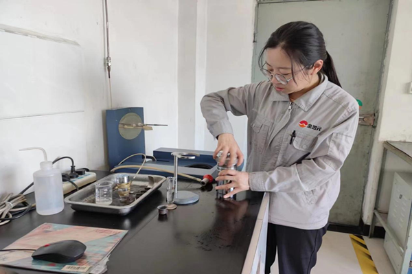 她堅定信念,做崗位楷模。“把枯燥的事情做好,為每一個數據負責”已然成為了她堅定的職業(yè)信念:每天面對同樣玻璃儀器、藥品溶液,同樣的檢驗過程,盡管單調,但她從來不敢松懈,她深知分析是生產崗位的眼睛,始終把“視質量為生命,以質量促發(fā)展”的理念銘記于心。本著客觀、嚴謹、細致的原則,在檢驗分析過程中做到實事求是、耐心細致、勇于負責!鞍咽褂眠^的物件清理干凈擺放好”已成為她的職業(yè)素養(yǎng),在化驗崗位的沉淀下已經成為一種習慣,不管自己還是其他人使用過的化驗室物品沒有擦干凈或者沒有定置擺放,她會一定去糾正它才覺得踏實!鞍踩褪切腋#踩褪切б妗彼钌畹目淘谒男睦,她始終牢記公司安全生產理念,自覺遵守各項安全制度,在各方面做好榜樣。
