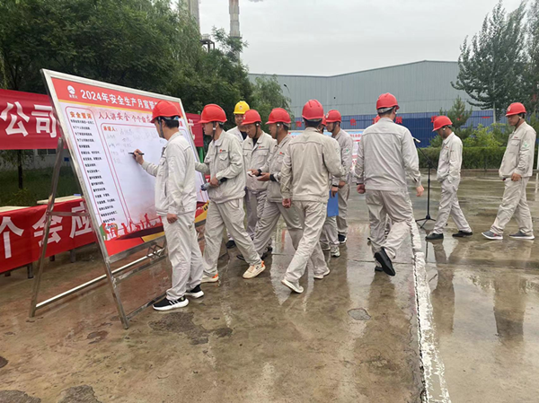 2024年5月29日上午,興昊永勝鹽業(yè)公司組織開展了“安全生產(chǎn)月”啟動儀式。啟動儀式上,各裝置長和勞務外包負責人分別作了表態(tài)發(fā)言,主管副經(jīng)理帶領(lǐng)大家做了安全宣誓,總經(jīng)理尚繼榮同志帶領(lǐng)每一位員工鄭重的在安全承諾簽字版上寫下了自己姓名。各裝置長和勞務外包負責人承諾:“他們會帶領(lǐng)部門員工,牢固樹立安全紅線意識,認真履職崗位職責,嚴格遵守公司規(guī)章制度,深入排查治理各類安全隱患,杜絕違章和安全生產(chǎn)事故發(fā)生”。