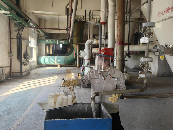 她們拎著貼好標(biāo)簽的取樣瓶,快步走向鹽硝廠房的各個(gè)取樣點(diǎn),回來時(shí),取樣瓶里裝著各色各樣的樣品,有的是晶瑩剔透的液體,在瓶中輕輕晃動(dòng),泛起細(xì)碎的漣漪;有的是白色的晶體顆粒,隨著腳步的顛簸,發(fā)出“沙沙”的輕響;還有的是粘稠的漿液,掛在瓶壁上,緩緩滑落。將樣品放置在滴定檢測(cè)區(qū)的那一刻,瓶身與臺(tái)面碰撞,發(fā)出“!钡囊宦暣囗,像是為接下來的化驗(yàn)工作,敲響了開場(chǎng)的鼓點(diǎn)。