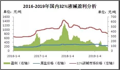 圖3 2016-2019年國(guó)內(nèi)32%液堿盈利分析