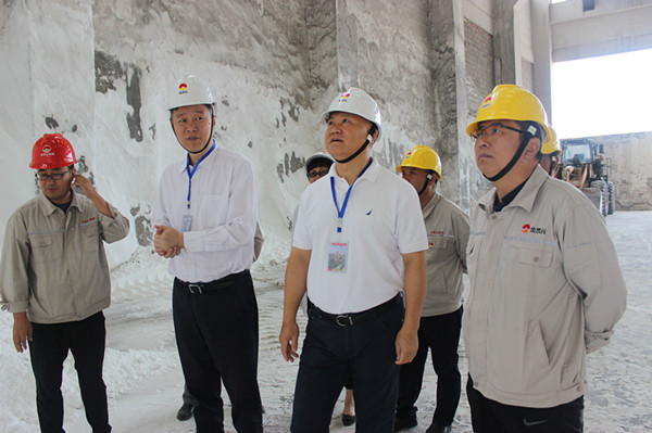 白鴻一行先后到興昊永勝鹽業(yè)公司鹽庫(kù)、鹽硝裝置、熱力裝置、企業(yè)文化展廳等地進(jìn)行實(shí)地調(diào)研,并在鹽庫(kù)合影留念。