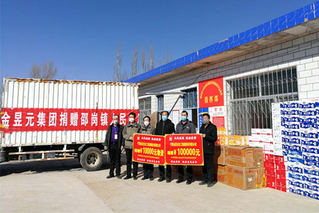 16日上午,春寒料峭,集團公司黨委副書記兼工會主席王立軍、工會副主席李新、集團公司辦公室主任朱公平等將10萬元捐款和價值1萬元物資捐贈給邵崗鎮(zhèn)政府時,青銅峽市副市長張克寧、邵崗鎮(zhèn)鎮(zhèn)長梁才等同志向金昱元集團表示感謝。