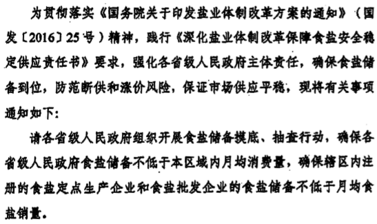 國務(wù)院《鹽業(yè)體制改革方案》規(guī)定: