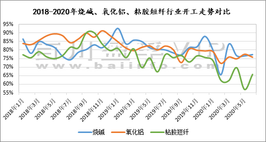 氧化鋁、粘膠短纖作為液堿的主力下游,整體用堿量占全部燒堿產(chǎn)量的38%-45%,其行業(yè)開(kāi)工不佳制約液堿需求,同時(shí)其每輪訂價(jià)更引領(lǐng)全國(guó)燒堿走向。