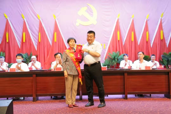 集團公司黨委書記代良云同志向老黨員郭淑珍頒發(fā)“光榮在黨50年”紀念章
