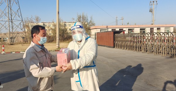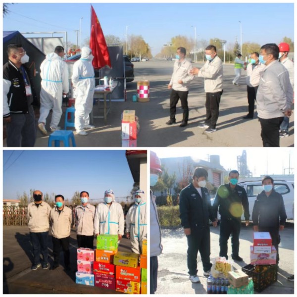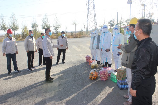 為提振士氣、鼓舞斗志,堅決打贏疫情防控阻擊戰(zhàn),10月31日、11月1日,寧夏金昱元化工集團股份有限公司總裁喬冠榮,監(jiān)事會主席郭復(fù)生,黨委副書記尚興,副總裁、固原片區(qū)總經(jīng)理王立軍,副總裁、青銅峽片區(qū)總經(jīng)理張立軍等領(lǐng)導(dǎo)組成慰問組,分別到固原片區(qū)和青銅峽片區(qū)各疫情防控卡點慰問奮戰(zhàn)在一線的防疫人員。