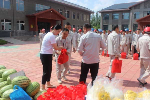 青銅峽市總工會和固原經濟開發(fā)區(qū)總工會為集團公司送來西瓜、礦泉水、金絲菊、冰糖等防暑物品,表達對企業(yè)一線員工關心和厚愛。