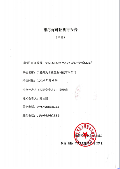 寧夏興昊永勝鹽業(yè)科技有限公司2024年第4季度排污許可執(zhí)行報(bào)告