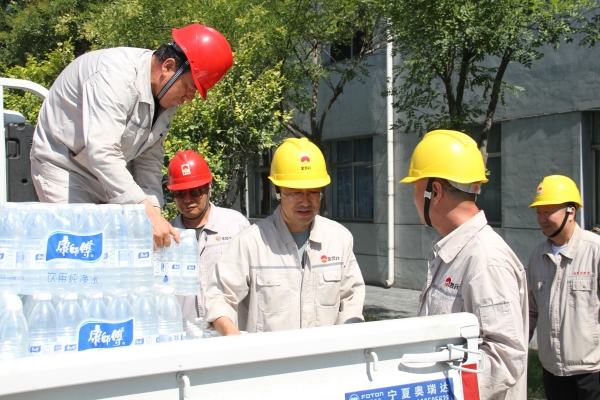 為嚴格做好高溫季節(jié)安全生產(chǎn)保障措施,持續(xù)做好防暑降溫工作,有力保障生產(chǎn)系統(tǒng)安全穩(wěn)定運行,7月29日,寧夏金昱元化工集團股份有限公司黨委副書記尚興、監(jiān)事會主席郭復生、副總裁周光平等領導深入青銅峽片區(qū),開展“夏日送清涼”慰問活動。