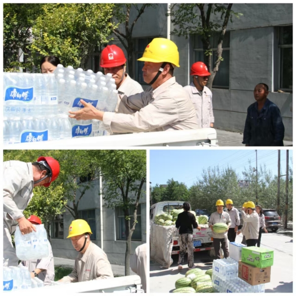 高溫如虎,關(guān)愛似海。集團公司黨委副書記尚興和其他領導把西瓜、飲料、茶葉等慰問品送到一線員工手中,送上集團公司黨委對一線員工的深切關(guān)愛,員工們對集團公司黨委的深切關(guān)懷深表感謝,戰(zhàn)高溫、斗酷暑、保安全的信心倍增。
