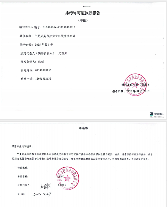 寧夏興昊永勝鹽業(yè)科技有限公司2025年第1季度排污許可執(zhí)行報(bào)告